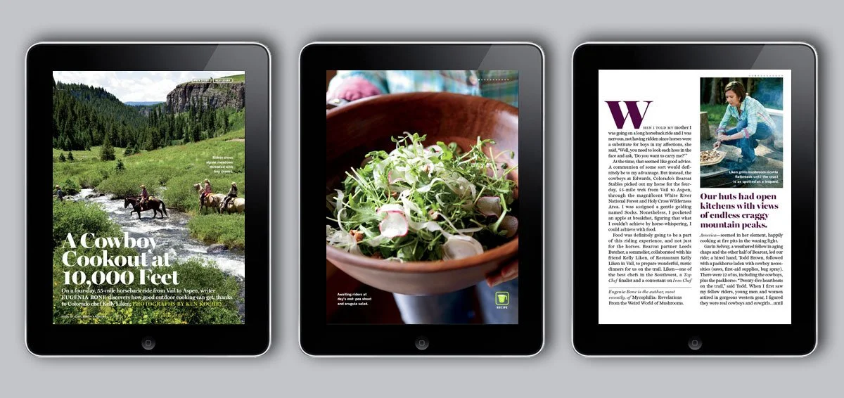 Food & Wine is an American Express epicurean brand which includes a website, monthly magazines, tablet editions, and books. Collaborating with editors, both print and online, other art directors/designers, and production managers, I worked on-site; developing layout designs, and UX design for the magazine’s tablet editions.